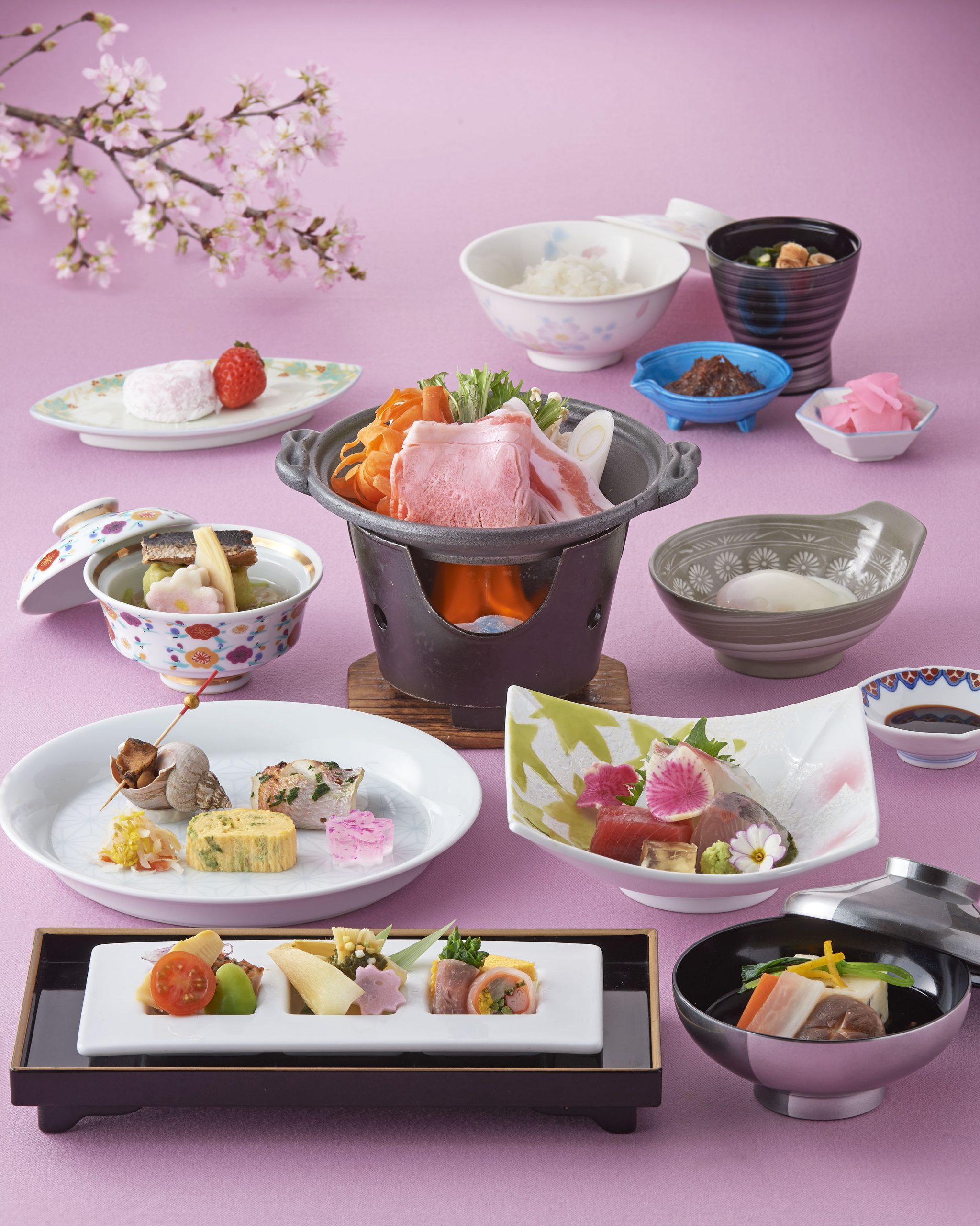 桜の季節を華やかに彩る会席料理。春ならではの味覚をお楽しみください。