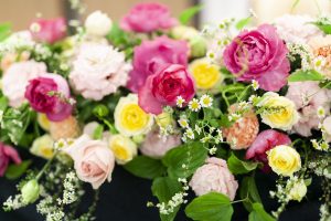 参列者みんなが笑って過ごせる空間を作りたくて、お花を明るく可愛いものを選びました。