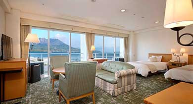 Kagoshima Sun Royal Hotel offers panoramic view of Sakurajima right before your eyes.